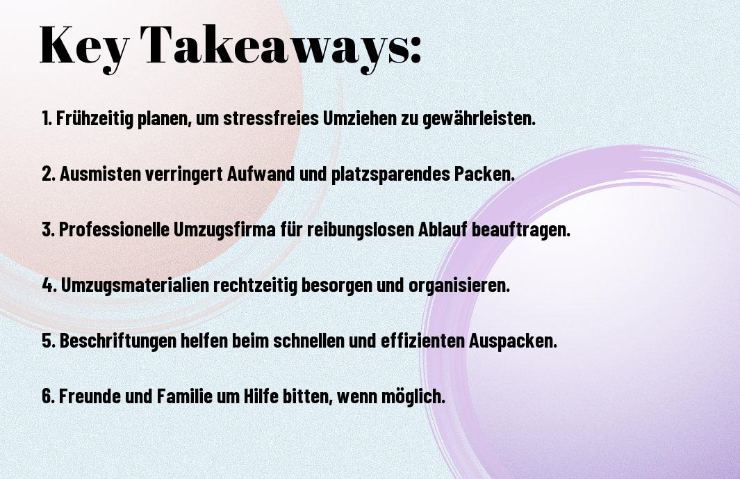 A: Eine strukturierte Planung ist entscheidend. Erstellen Sie eine To-Do-Liste und delegieren Sie Aufgaben an Freunde oder Familienmitglieder. Überlegen Sie zudem, ob Sie professionelle Hilfe in Anspruch nehmen möchten, um den Stress zu reduzieren und den Umzug effizienter zu gestalten.